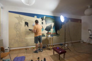 Acrylic on canvas. Size 570 / 200 cm.