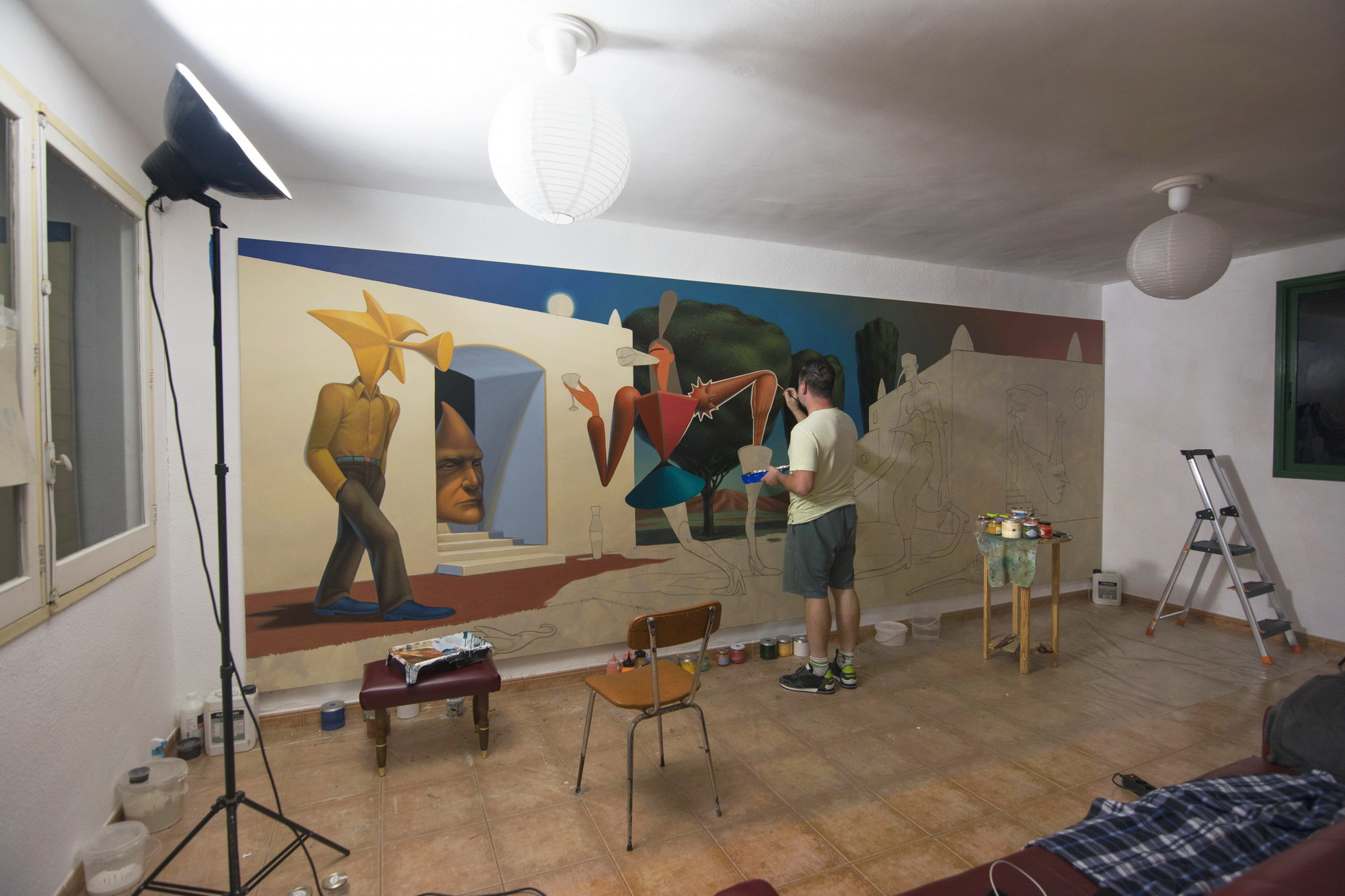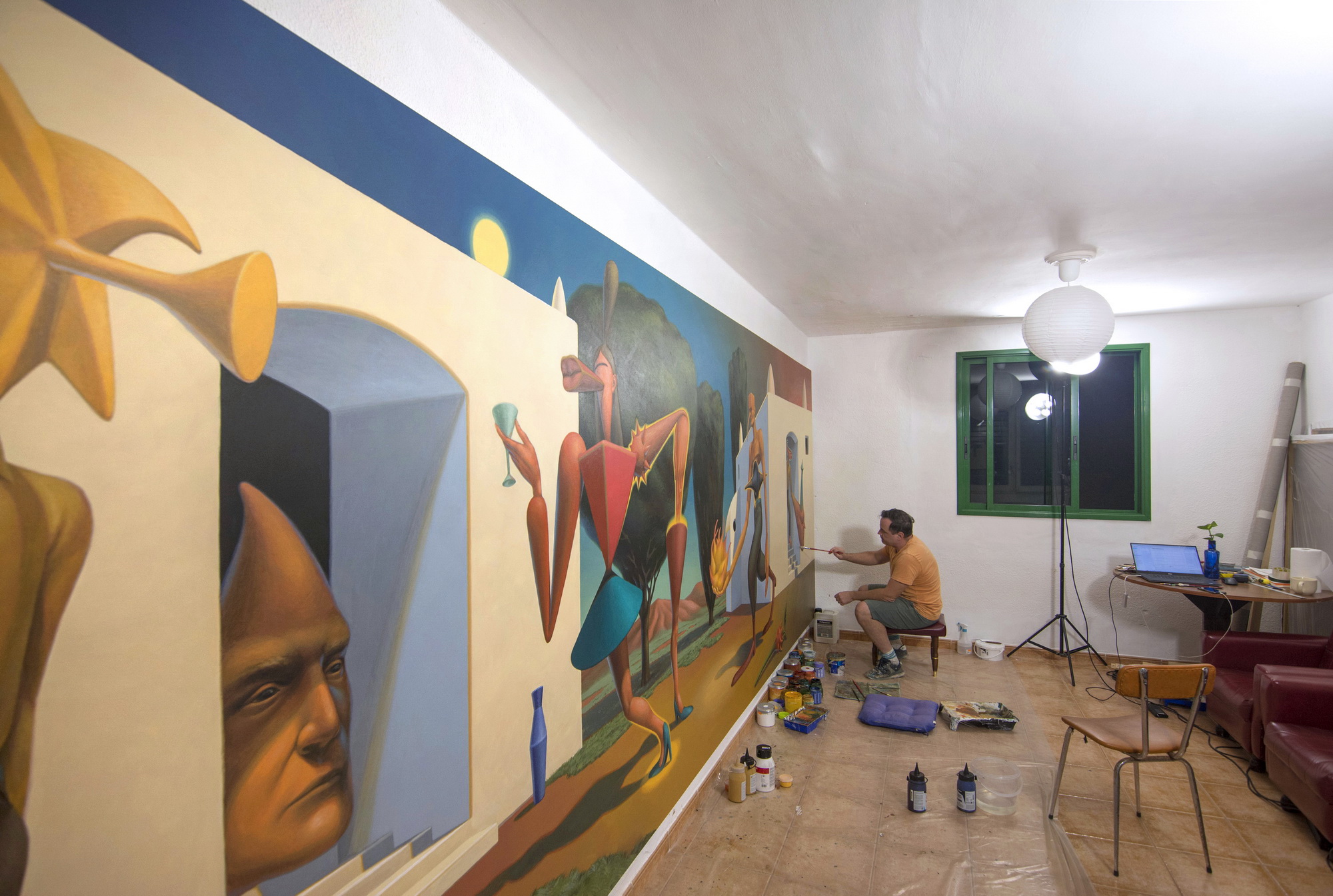 Acrylic on canvas. Size 570 / 200 cm.